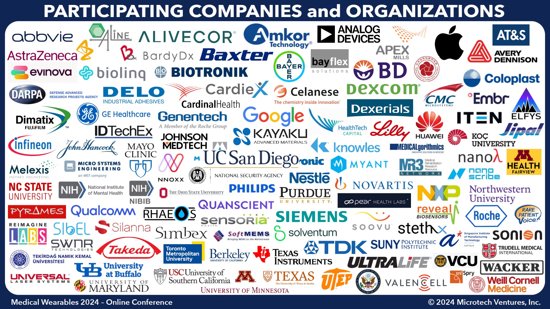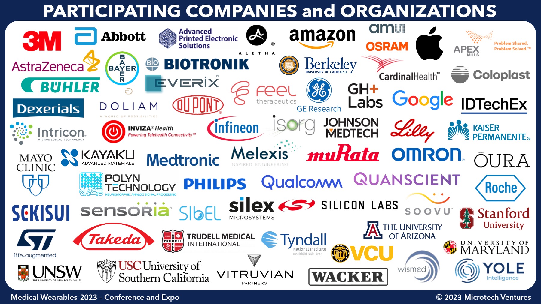 The future is bright for medical wearables -- we invite you to attend this conference to identify emerging technology and application trends, exchange ideas, form new companies, and network with your industry peers!